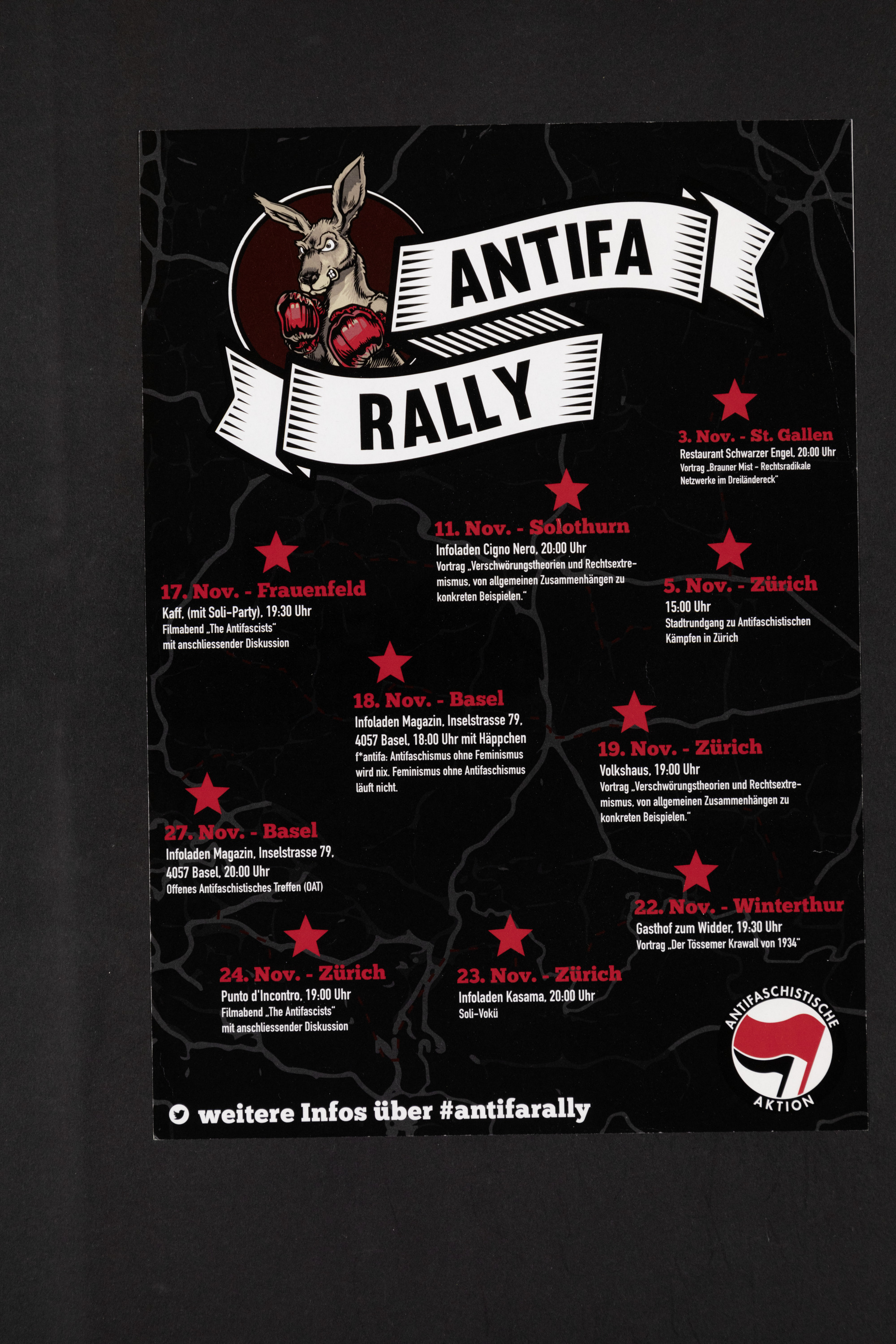 Veranstaltungen 1.11.-27.11. in Zürich, Winterthur, Frauenfeld, Basel und Solothurn