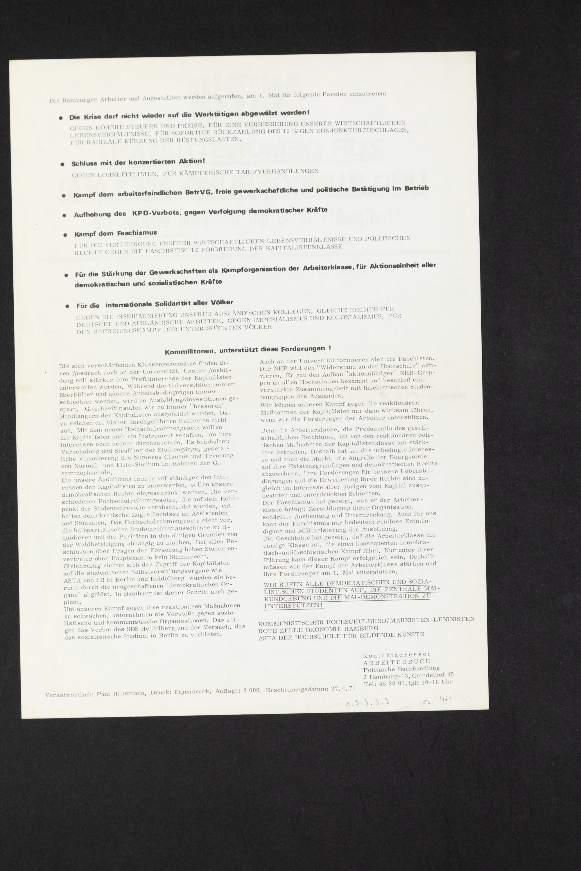 Aufruf zur Demonstration und Kundgebung am 1. Mai (Rückseite)