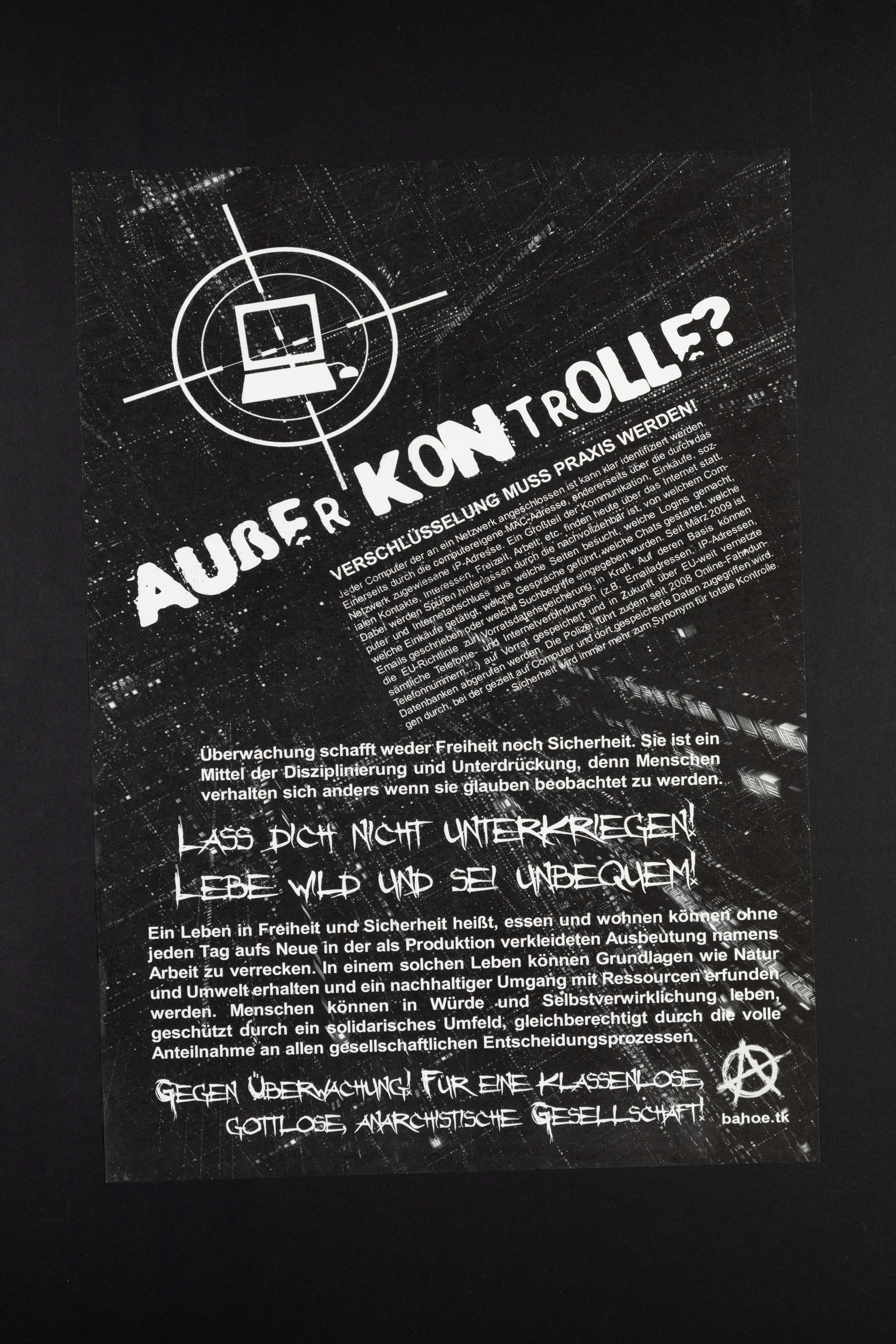 Ausser Kontrolle? Verschlüsselung muss Praxis werden! Gegen Überwachung! Für eine klassenlose, gottlose, anarchistische Gesellschaft
