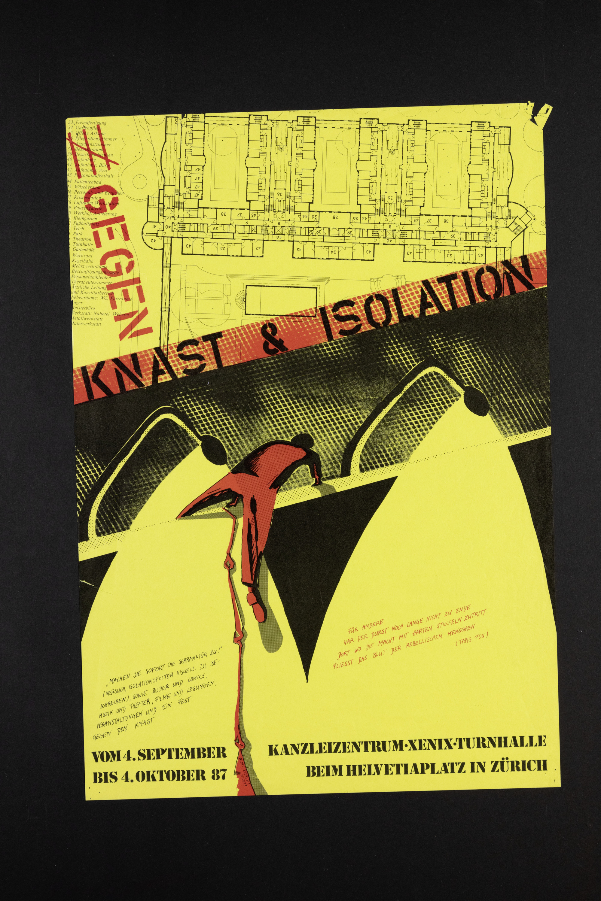 Ausstellung und Veranstaltungen. Gegen Knast und Isolation. Kanzleizentrum. Xenix. Turnhalle
