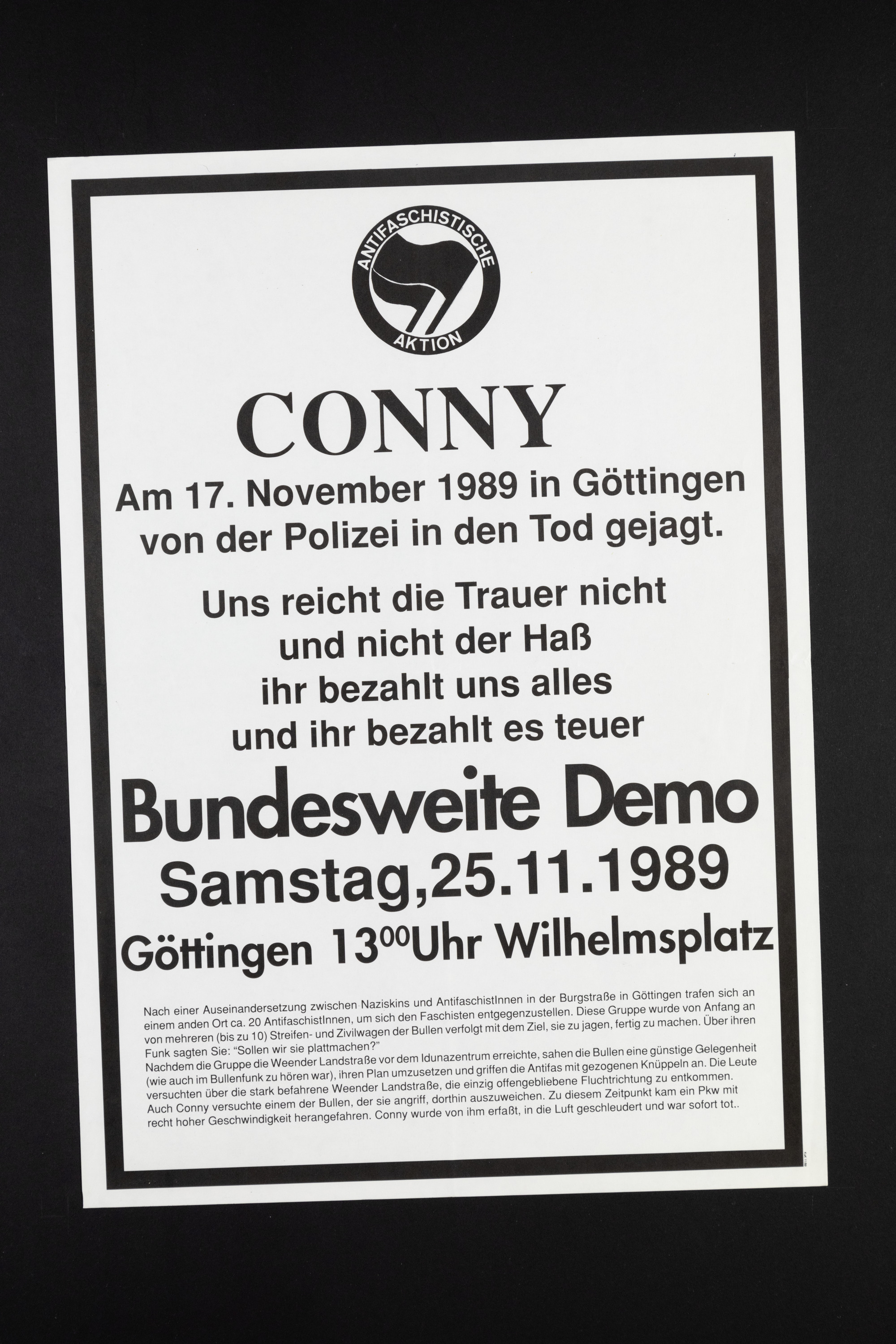 Conny. Am 17. November 1989 in Göttingen von der Polizei in den Tod gejagt. Bundesweite Demo