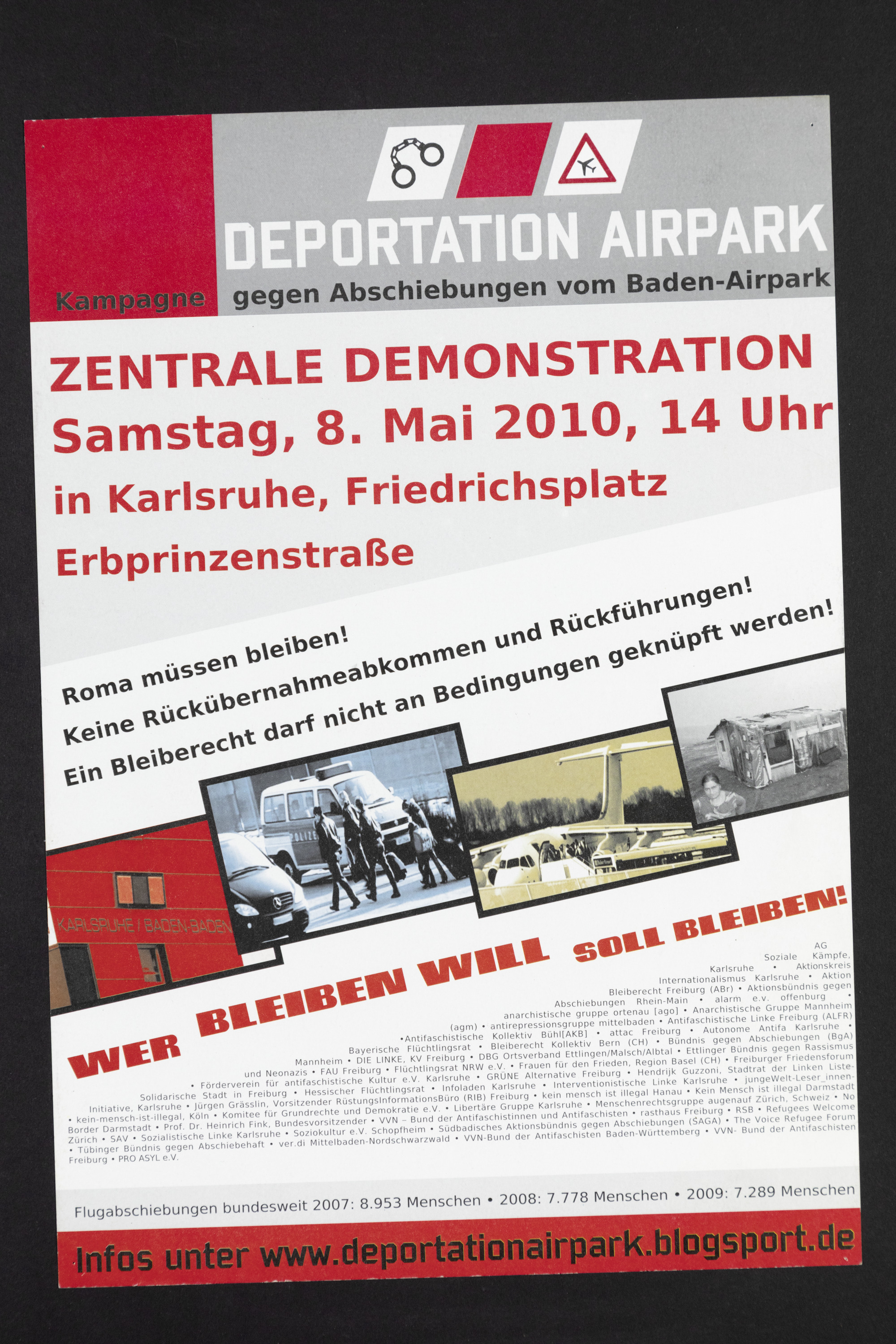 Deportation Airpark. Kampagne gegen Abschiebungen vom Baden-Airpark. Roma müssen bleiben! Demonstration