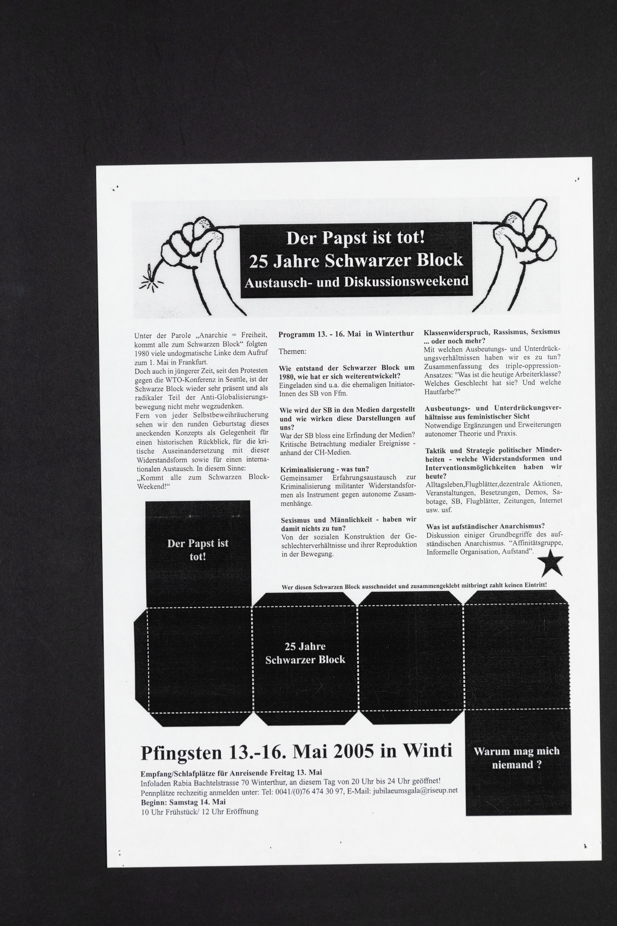 der Papst ist tot! 25 Jahre Schwarzer Block. Austausch- und Diskussionsweekend.
