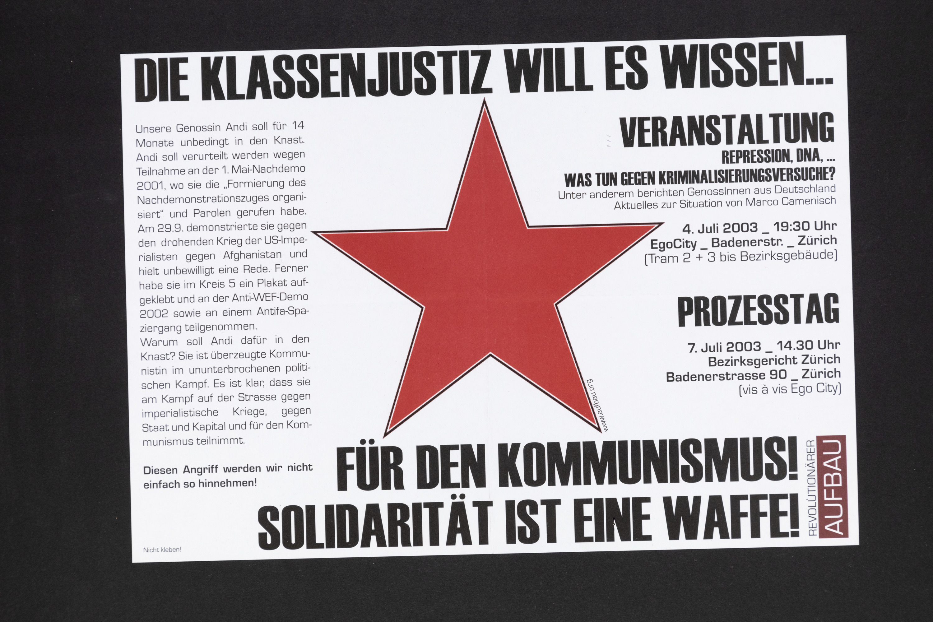 Dokument 56 - Die Klassenjustiz will es wissen… Veranstaltung und Prozesstag. Verfahren Andi