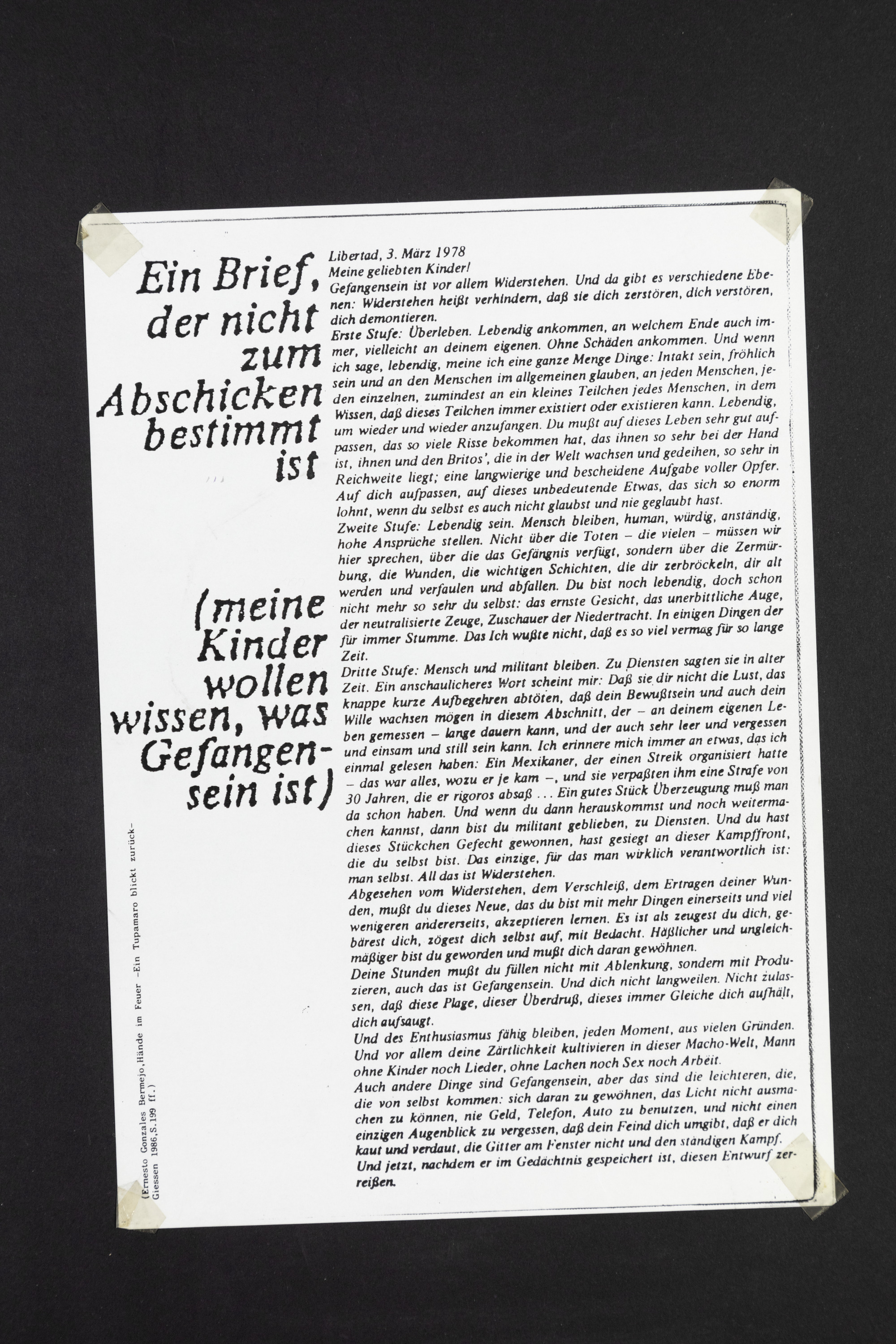 Ein Brief, der nicht zum Abschicken bestimmt ist. (Meine Kinder wollen wissen, was Gefangensein ist)