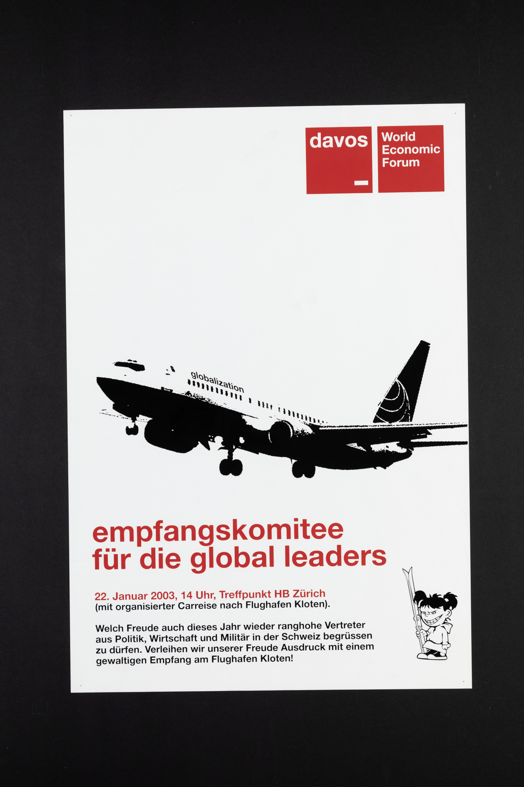 Welch Freude auch dieses Jahr wieder ranghohe Vertreter aus Politik, Wirtschaft und Militär in der Schweiz begrüssen zu dürfen. Verleihen wir unserer Freude Ausdruck mit einem gewaltigen Empfang am Flughafen Kloten!