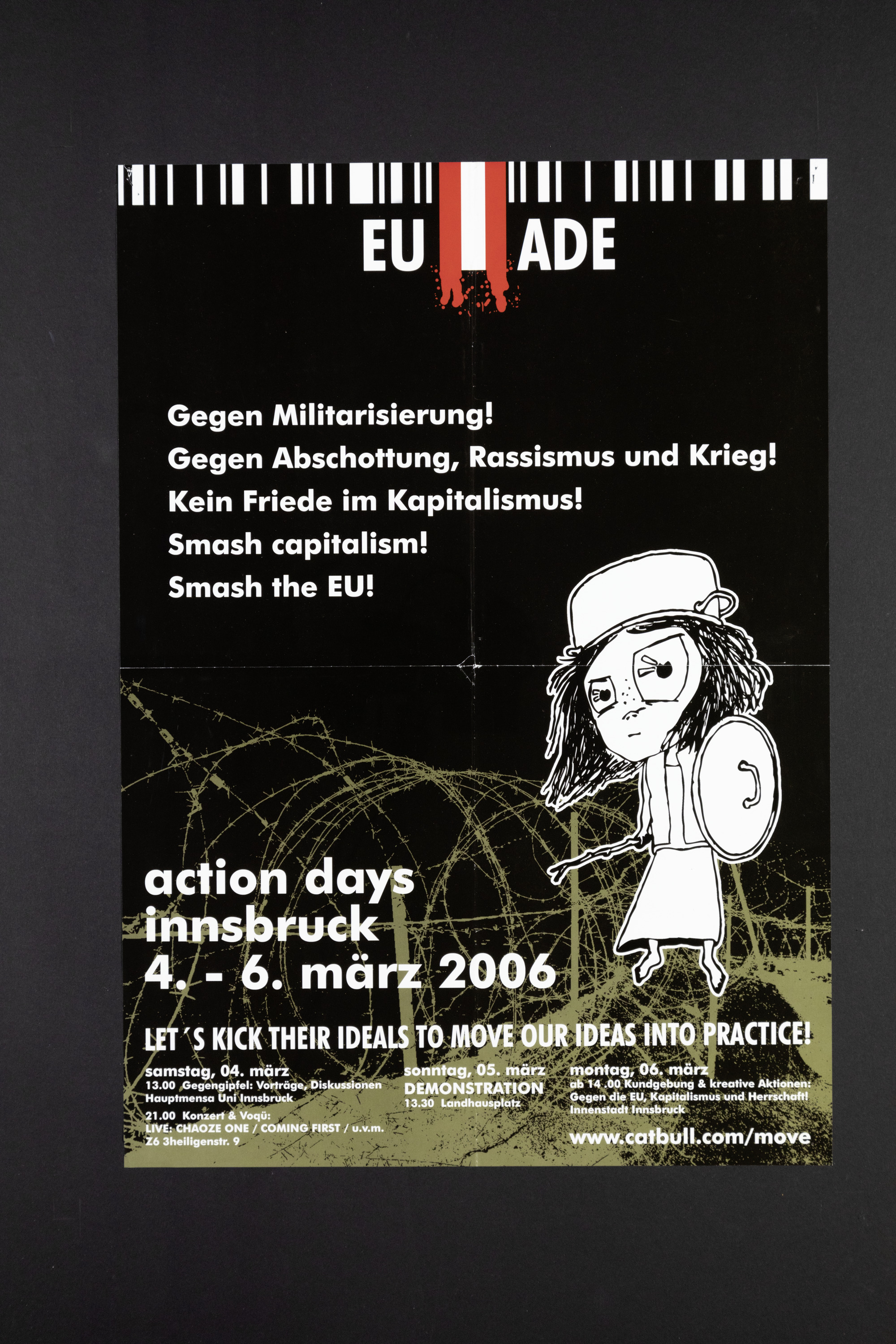 Gegen Militarisierung! Gegen Abschottung, Rassismus und Krieg! Kein Friede im Kapitalismus! Smash capitalism! Samsh the EU! action days innsbruck, 4.-6. März 2006.