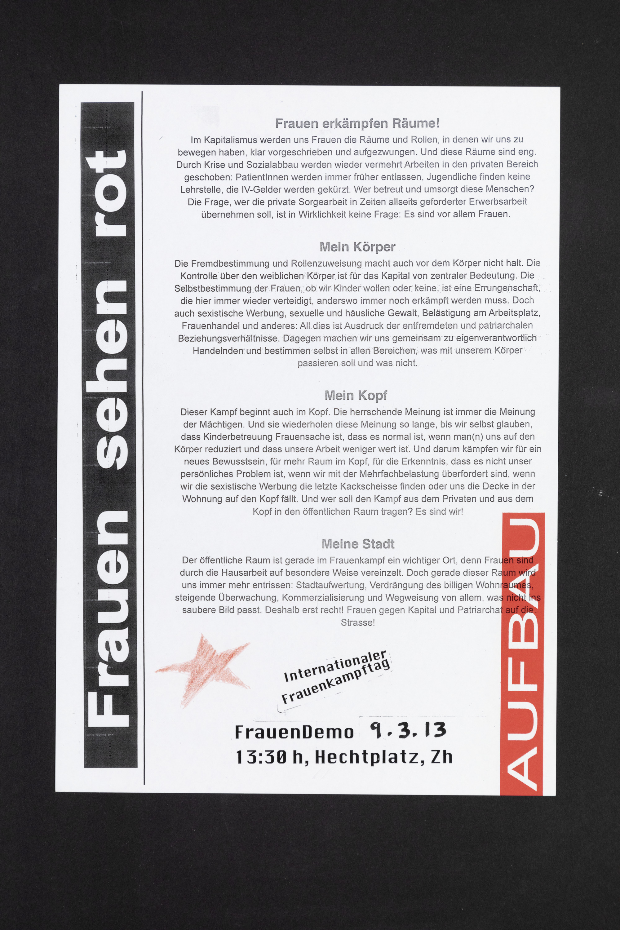 Frauen sehen rot. Wandzeitung. Frauendemo