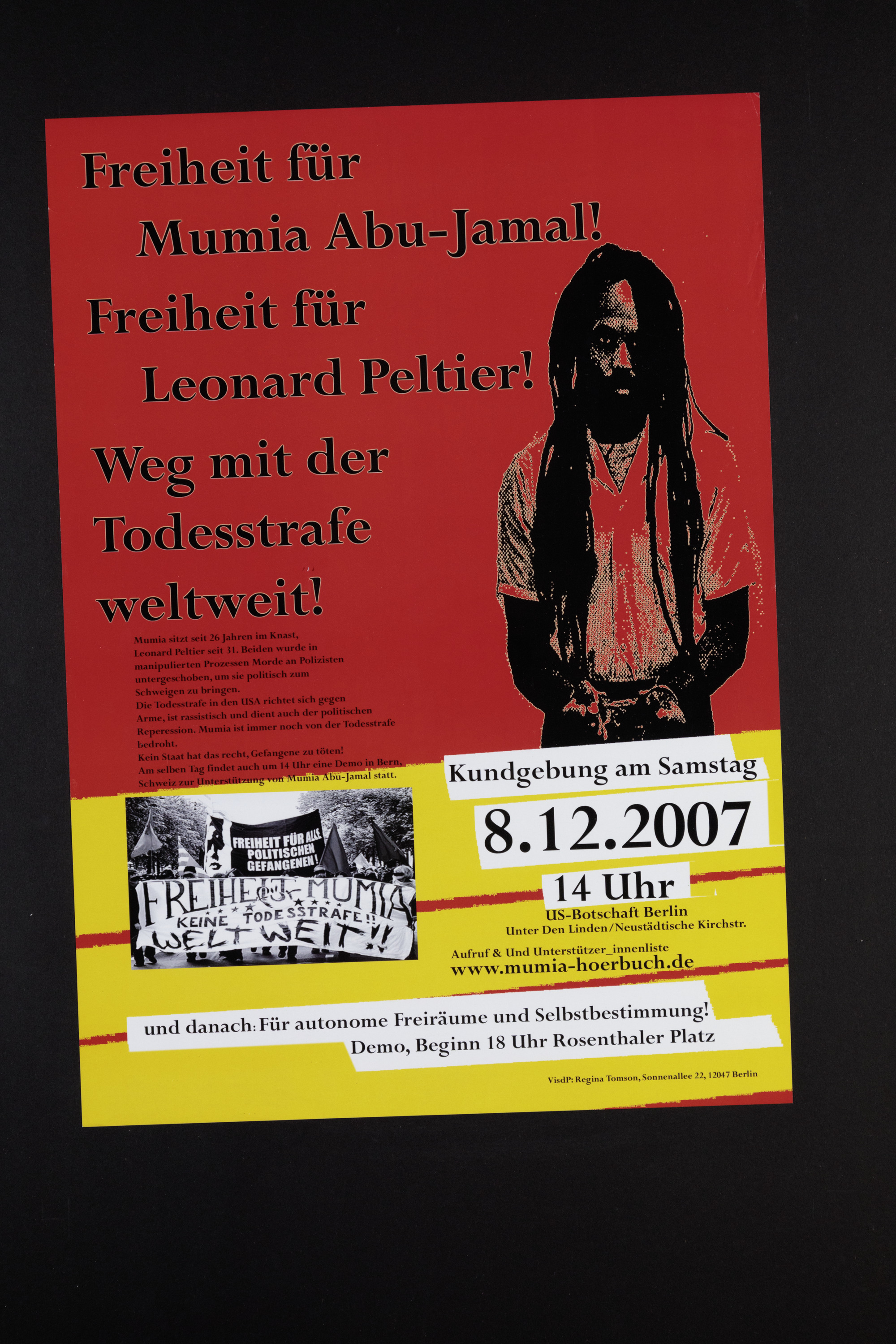 Freiheit für Mumia Abu-Jamal. Freiheit für Leonard Peltier. Weg mit der Todesstrafe weltweit.