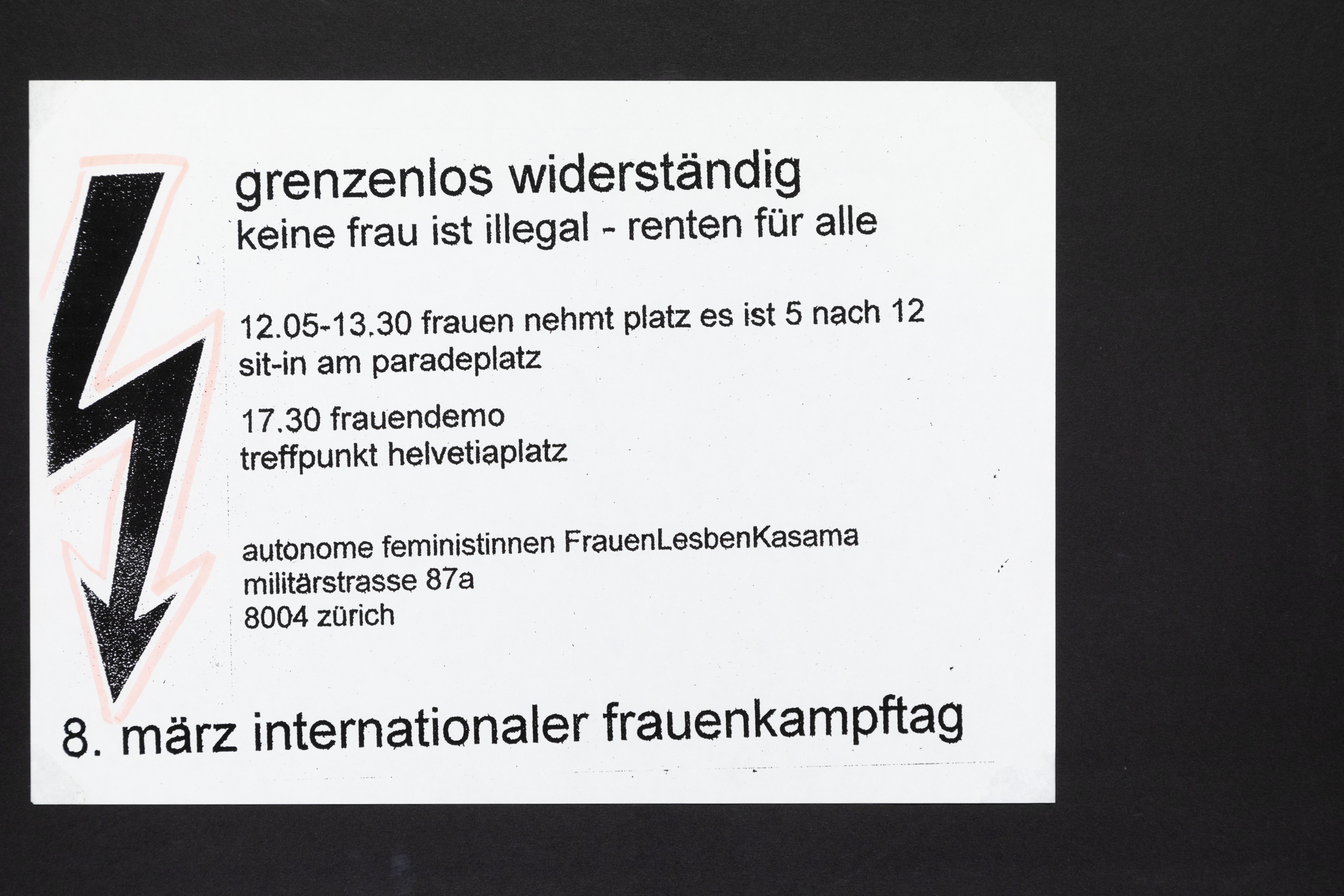 grenzenlos widerständig. Keine Frau ist illegal - Renten für alle. Sit-in / frauendemo. Paradeplatz / Helvetiaplatz