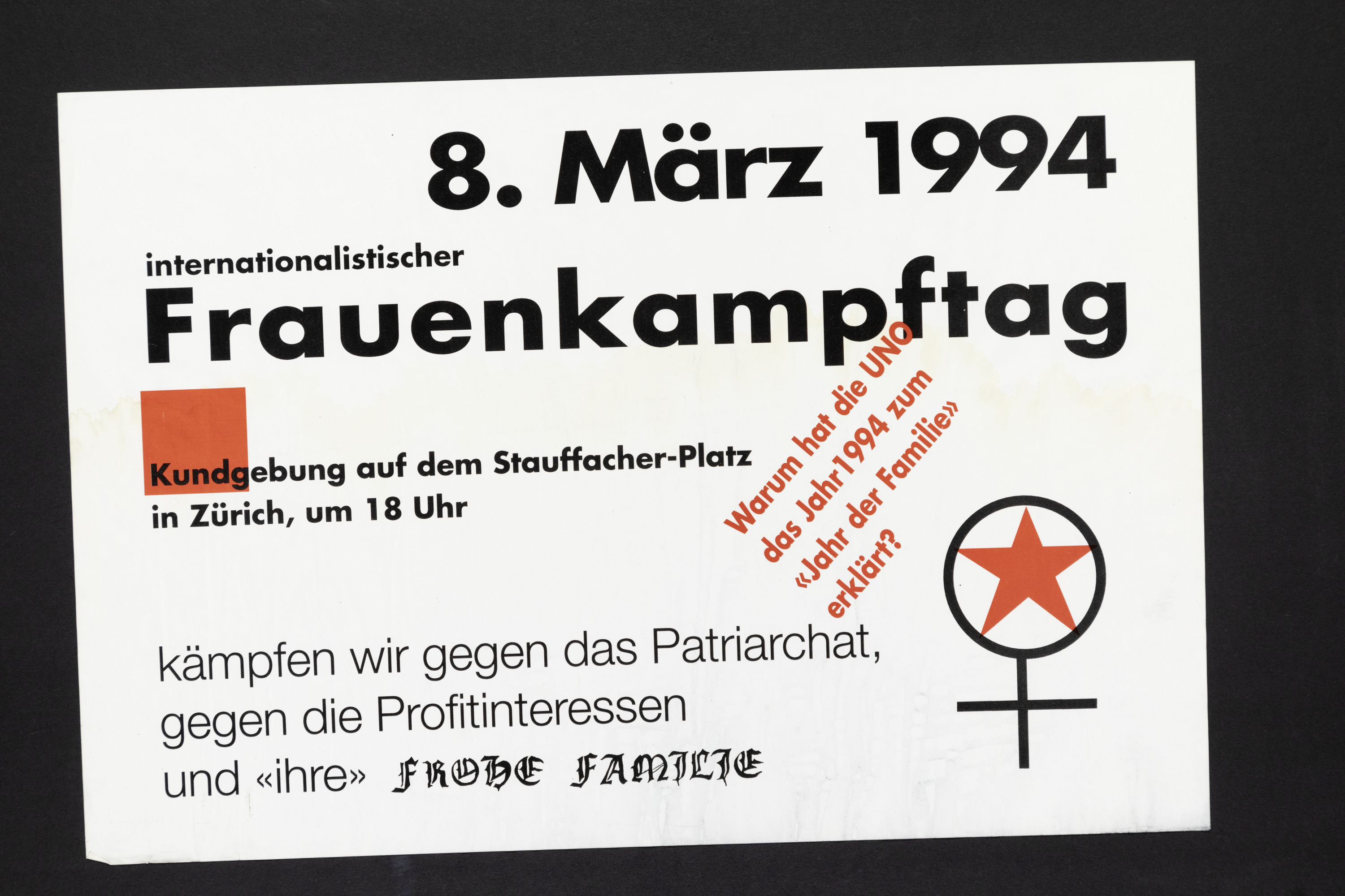 Dokument 39 - kämpfen wir gegen das Patriarchat, gegen die Profitinteressen und ihre frohe Familie. Kundgebung. Stauffacherplatz