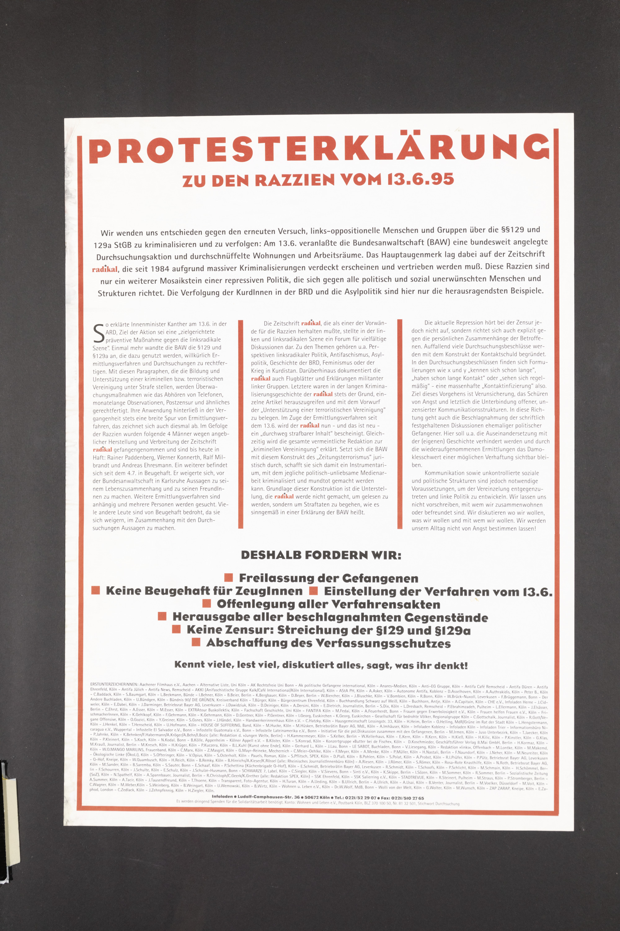 Protesterklärung zu den Razzien vom 13.6.1995 […] - Freilassung der Gefangenen […]