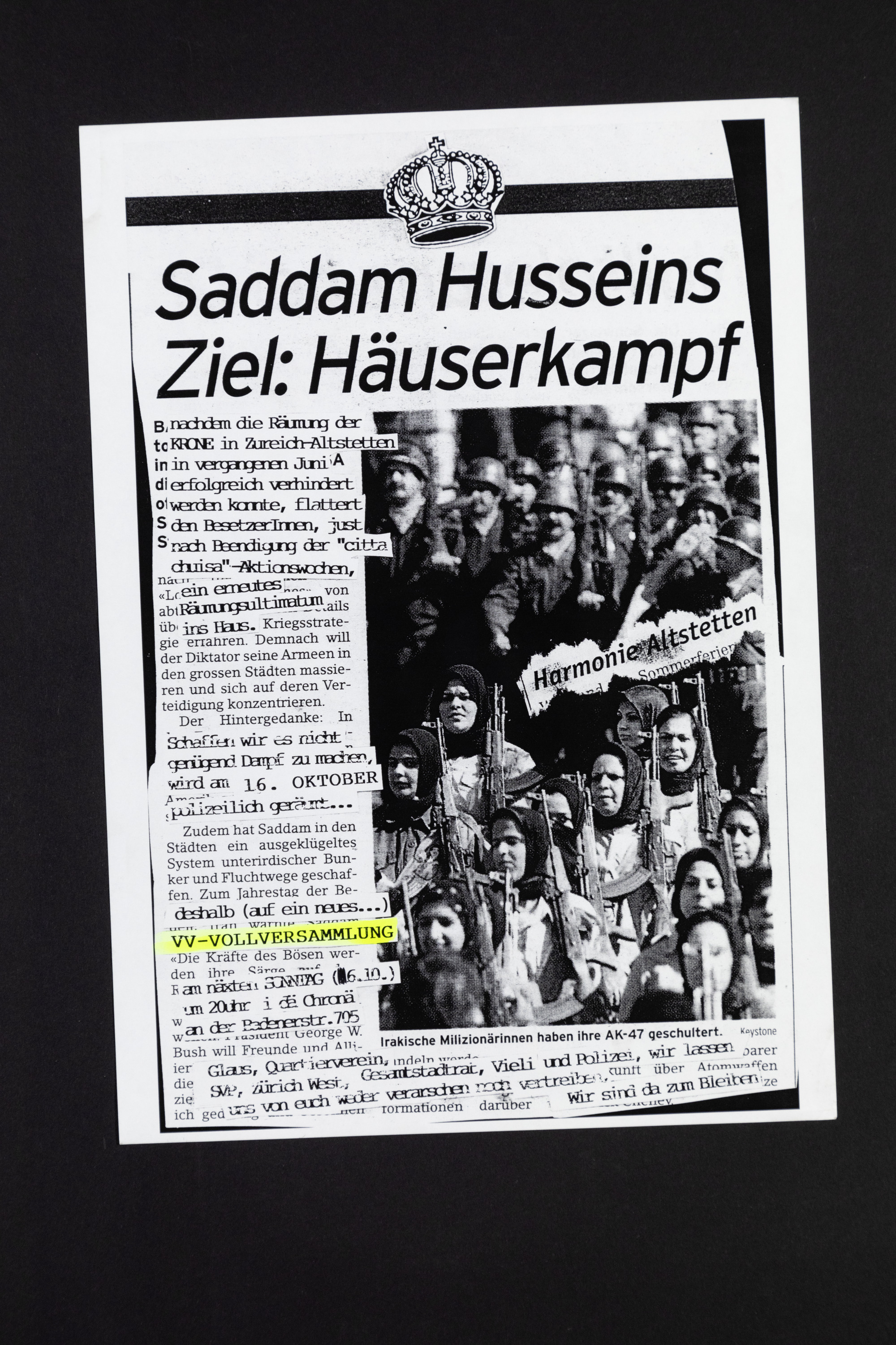 1. Oktober, Vollversammlung. Harmonie in Altstetten, Chronä, Badenerstrasse 705