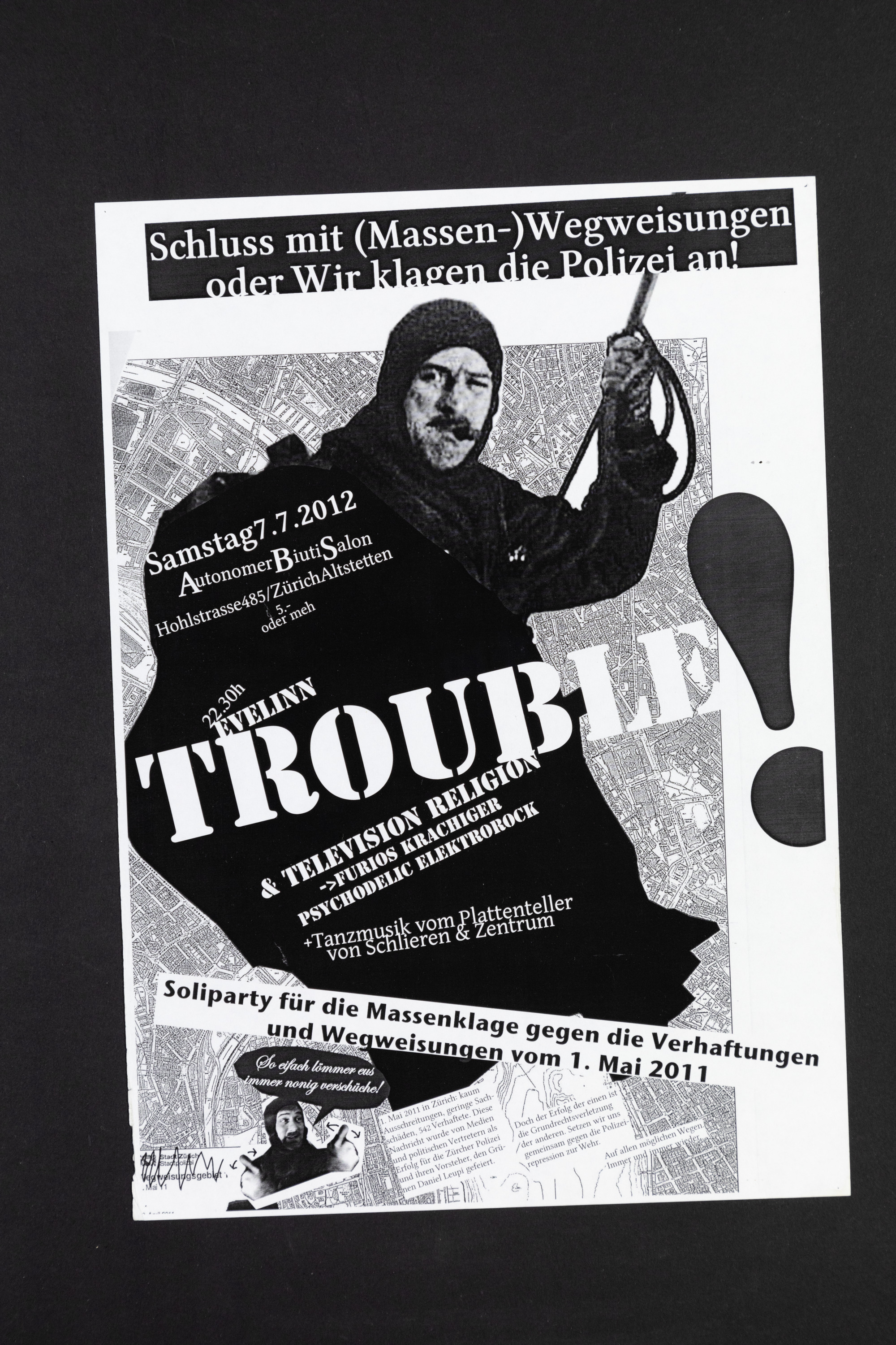 Schluss mit (Massen-)Wegweisungen oder Wir klagen die Polizei an. Soliparty für die Massenklage gegen die Verhaftungen und Wegweisungen vom 1. Mai 2011. Autonomer Beauty Salon
