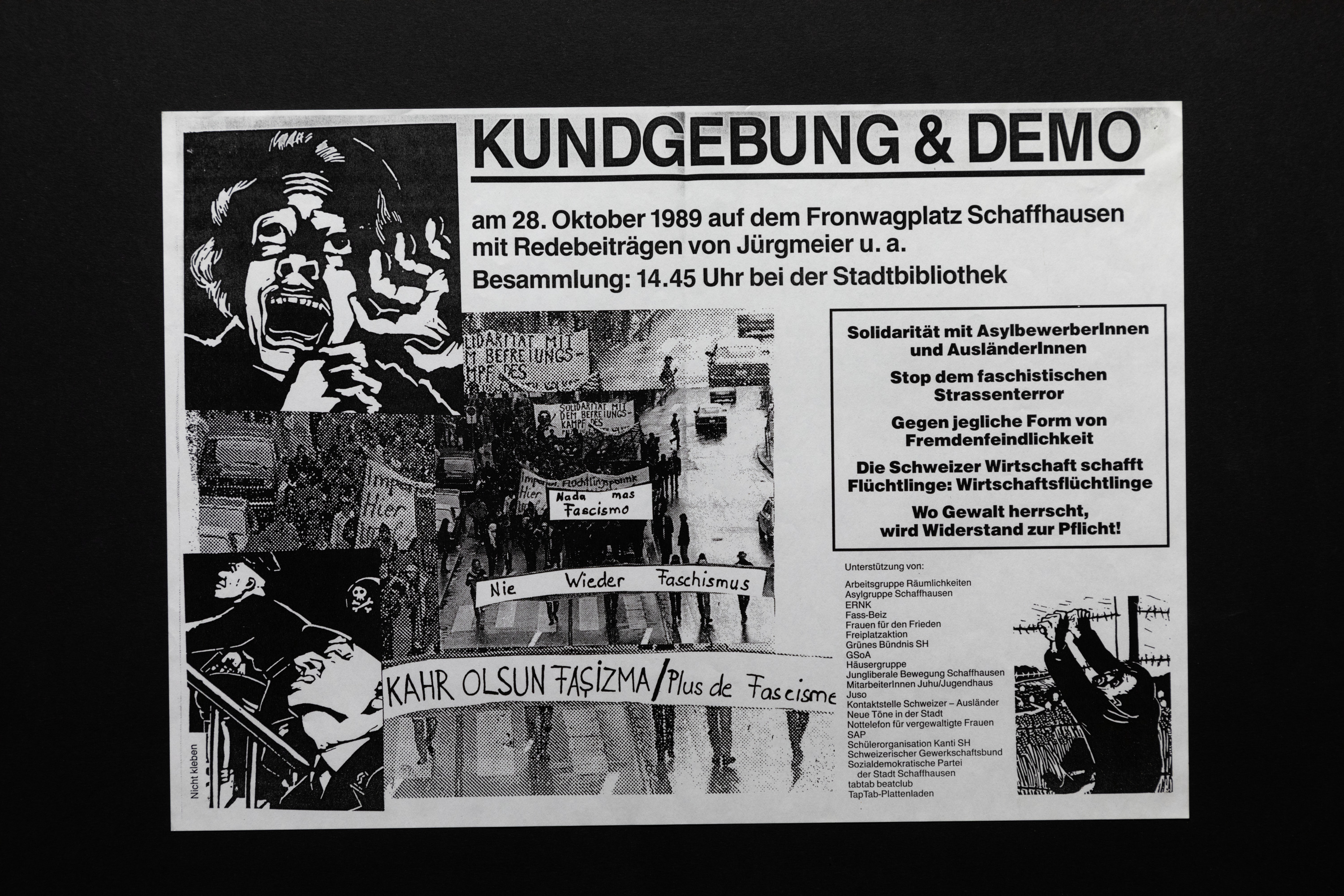 Dokument 44 - Solidarität mit AsylbewerberInnen und AusländerInnen. Kundgebung und Demo. (weiss)