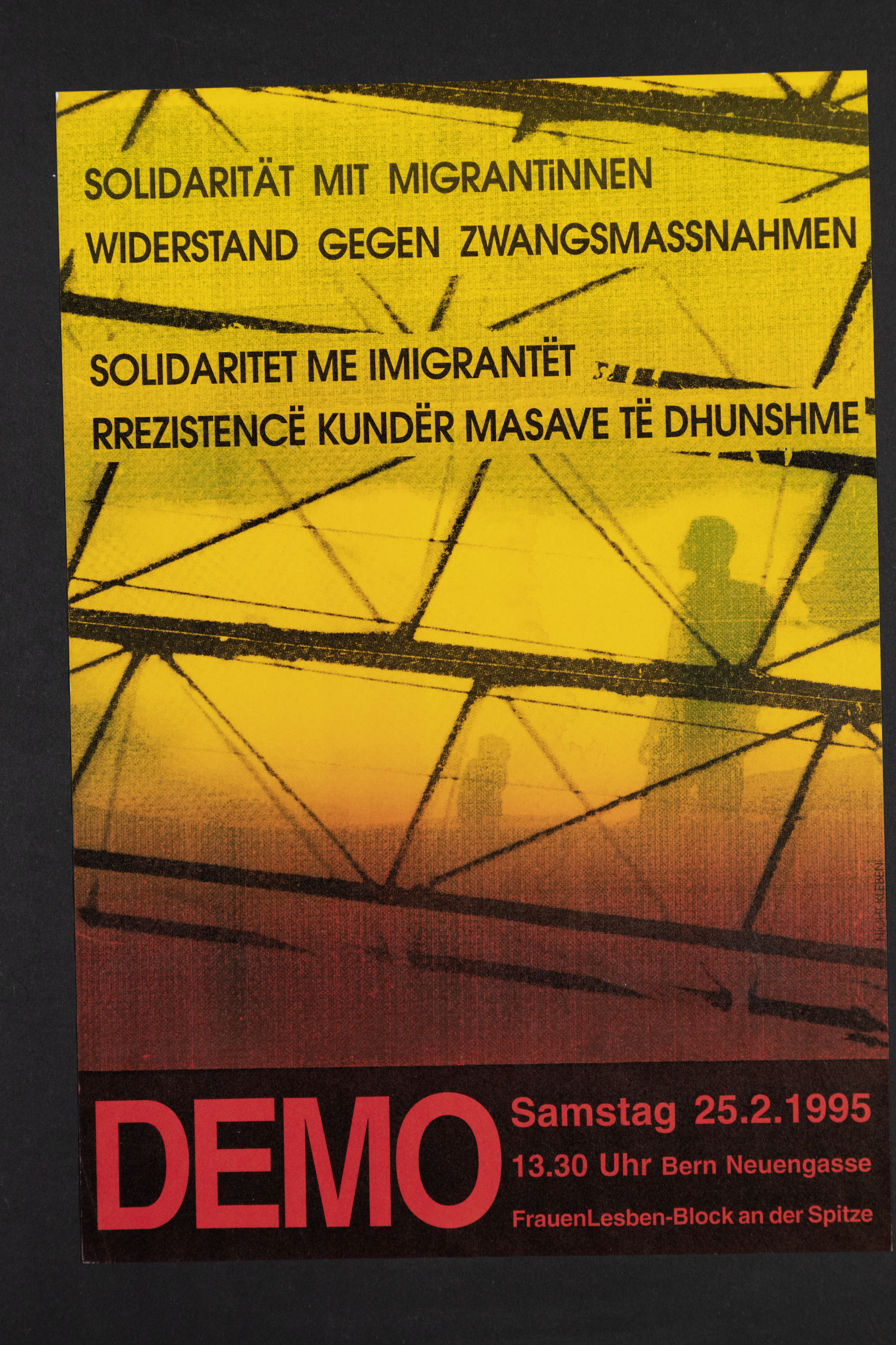 Solidarität mit MigrantInnen. Widerstand gegen Zwangsmassnahmen. Demo. FrauenLesben-Block an der Spitze
