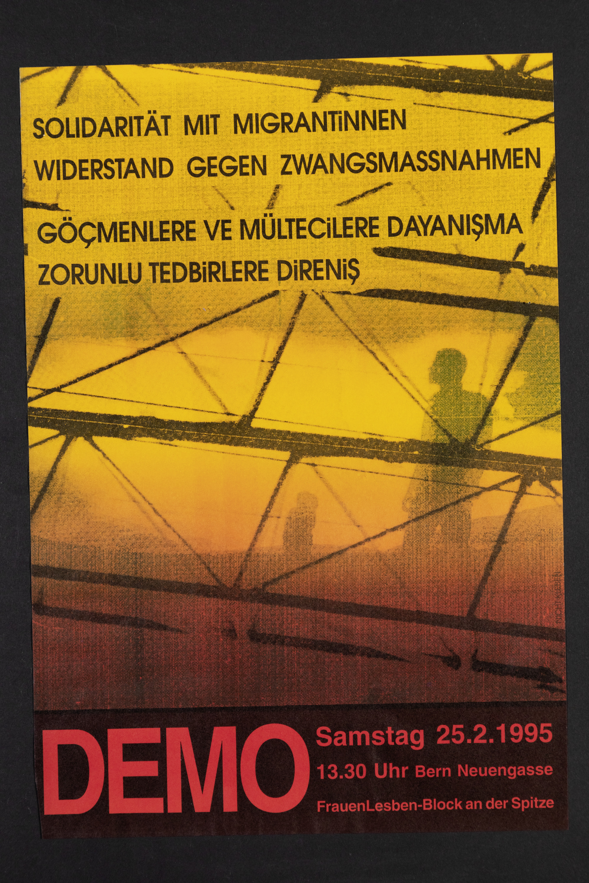 Solidarität mit MigrantInnen. Widerstand gegen Zwangsmassnahmen. Demo. FrauenLesben-Block an der Spitze